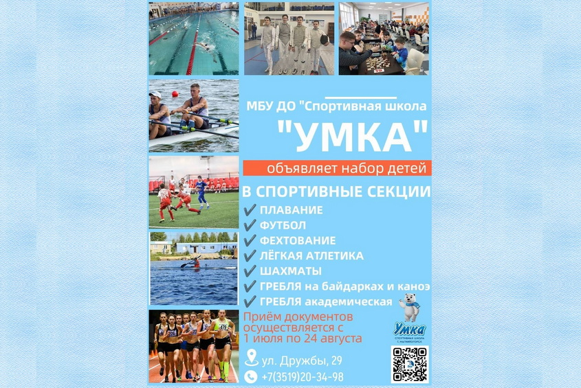 МБУ ДО "Спортивная Школа "УМКА" г. Магнитогорска начинает набор детей с 01 июля по 24 августа 2023 года